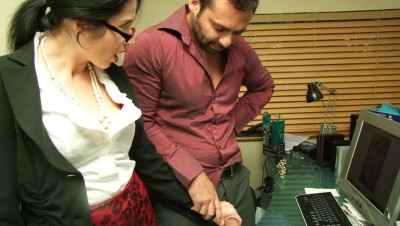 Frank is caught red handed when he gets interrupted whilst jerking off to some sexy pics he found of the two hot office secretaries Tatiana and Persia. The two milfs scold him and yell him, until they see how large his dick is. They decide to help him bust his nut all over the computer screen by sucking and jerking him off together.