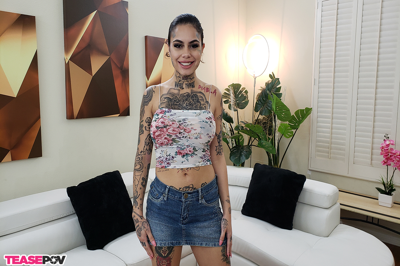 Sinning is a lot more fun with Genevieve Sinn. Except in this new scene from TeasePOV.com, this inked up babe is the one doing all the sinning. Geneveieve feverishly sucks on your cockhead and plays with your balls and she wont stop until you blow your load across her tattoo's face and big huge boobs.