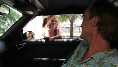 Alyssa Hart need a ride after her car breaks down, luckily, Mr. Johnson arrives to save the day. But since his wife is away, he hasn't busted his nut in weeks. His giant cock protrudes out of his shorts and Alyssa's pussy gets wet at the sight. After some coaxing, Alyssa decides to milk him dry for the car ride.