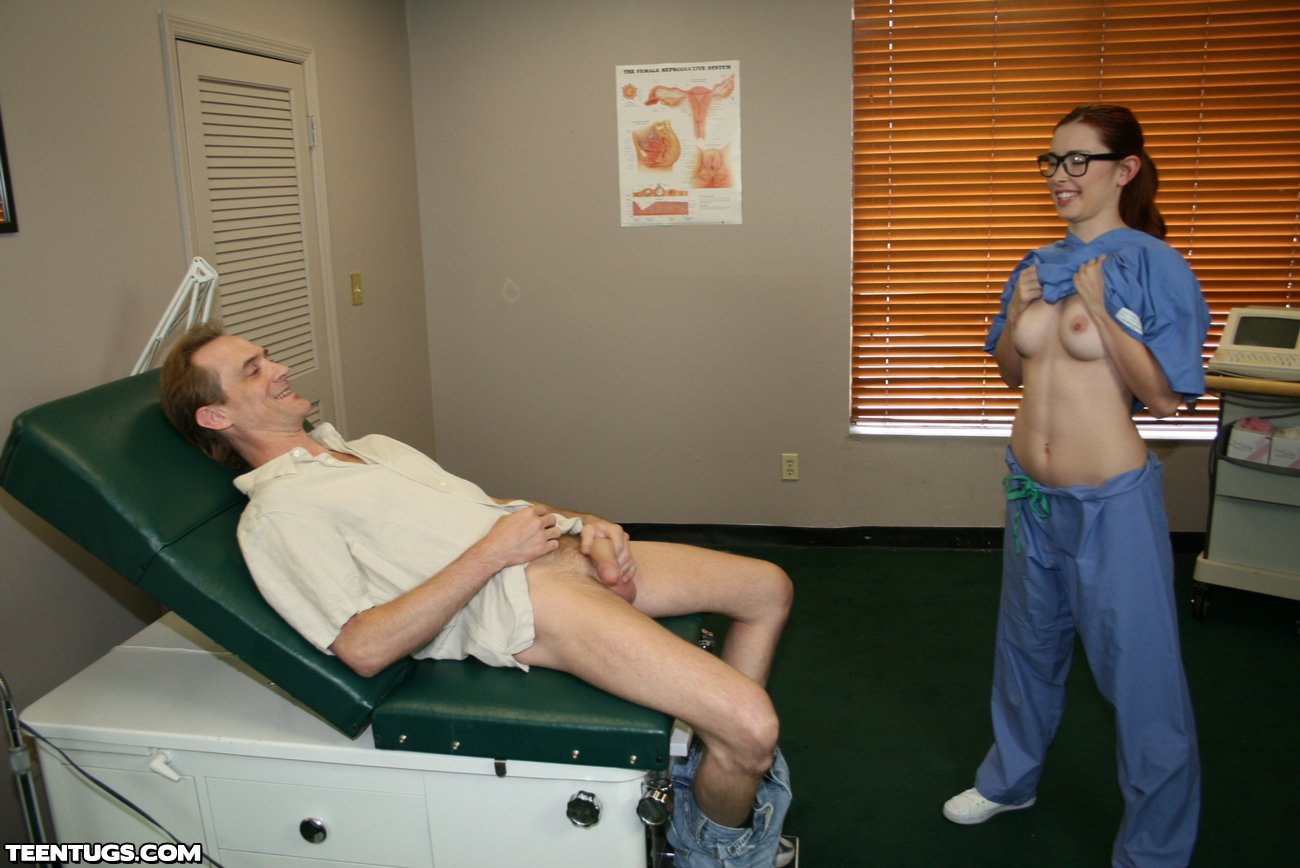 When Clint gets checked out for ED, he is amazed at the sexy nurse Melody in the doctors office. His cock gets immidiatly erect when she walks into the room. But too much blood rushing to his prick makes him pass out. Melody, loving the size of his cock decides to finish him off with a sexy nurse handjob.