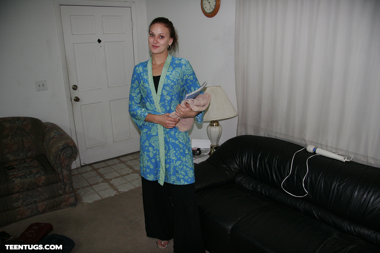 Cute teen Oxanna participates in a team handjob lesson. Her mission is to confidently perform her jerking skills and show everyone how a good handjob is done. The brunette cutie gets naked and slowly strokes her volunteer's cock while lightly teasing it with a vibrator, until she makes him cum.. Well done Oxanna!