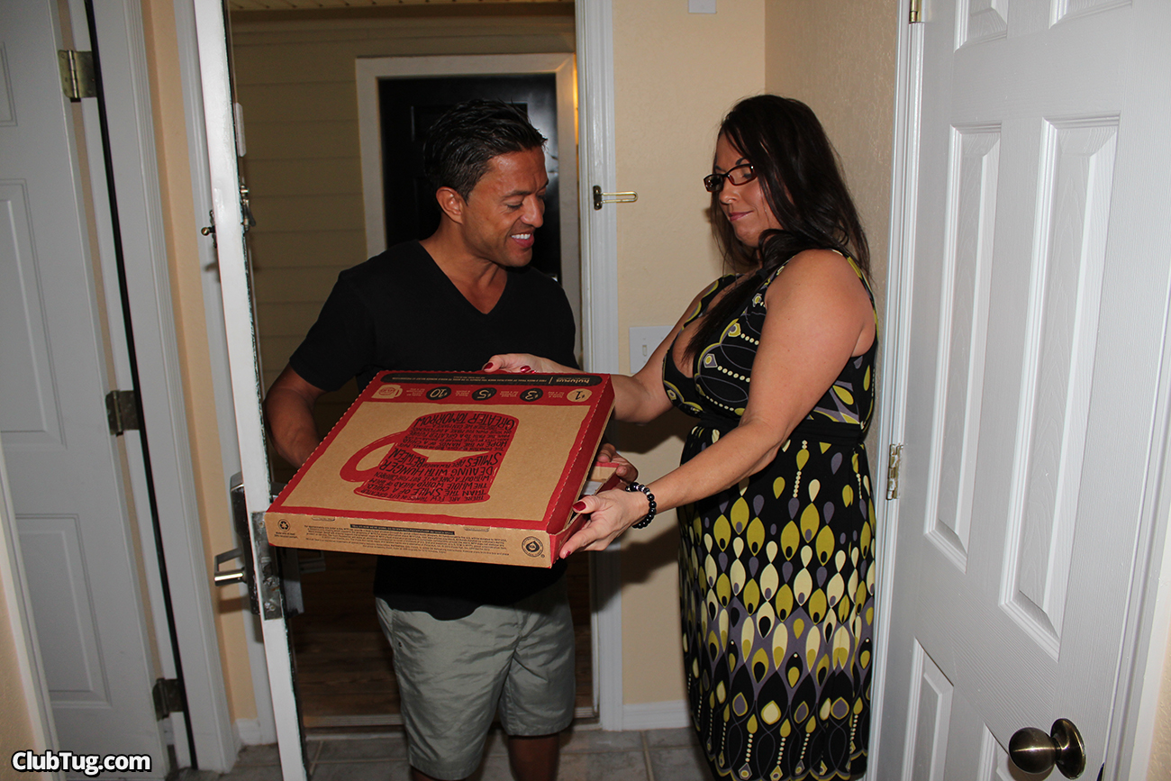 Buxom babe Stacie Starr has no cash for her food order so she decides to pay my pumping the delivery boys big penis. She teases him with her giant tits and asks if he wants to suck on them. She then pulls out his hard dick and goes to town.