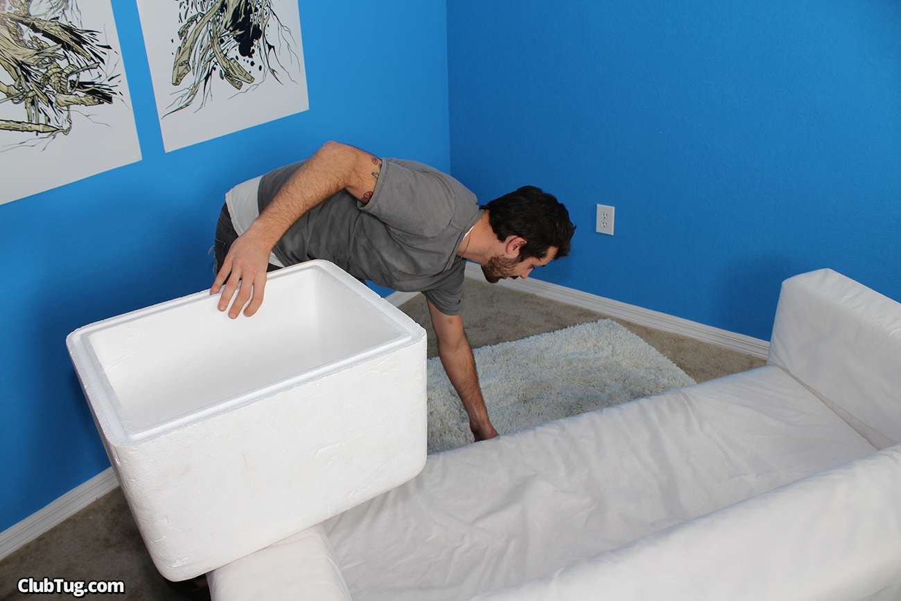 Melody Jordan is a horny redhead slut. When Bill finishes the job she has hired him for, she comes in the room wearing only her underwear, and wants to give him a special treatment to thank him for his services. The naughty lady asks him to sit on the couch and starts stroking his monster-sized boner. t.