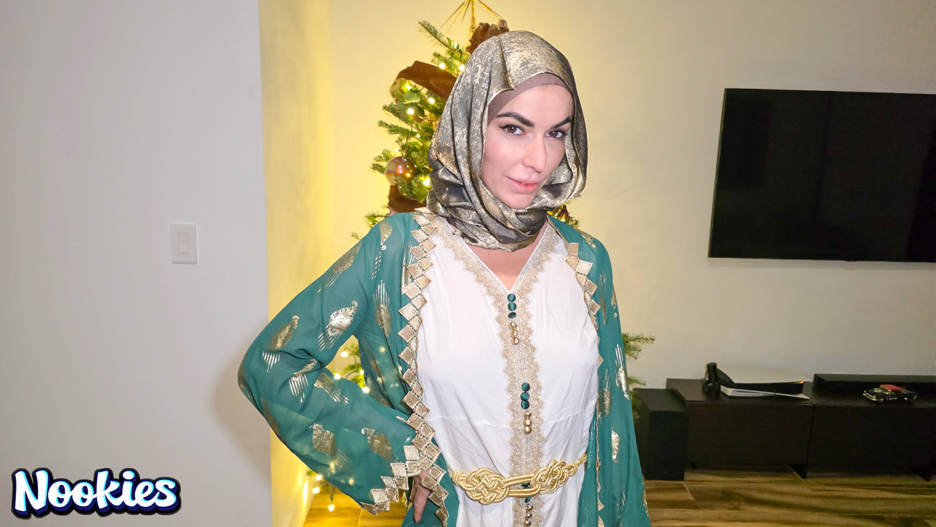 A lonely college student with no place to spend Christmas is invited to dinner by his hijab-wearing professor Mrs. Valencia. She complains about her husband always being away and the conversation turns intimate. What starts as a kind gesture ends with them crossing a line into a balls deep fuck for the stunning hot wife professor and ends with a messy facial.