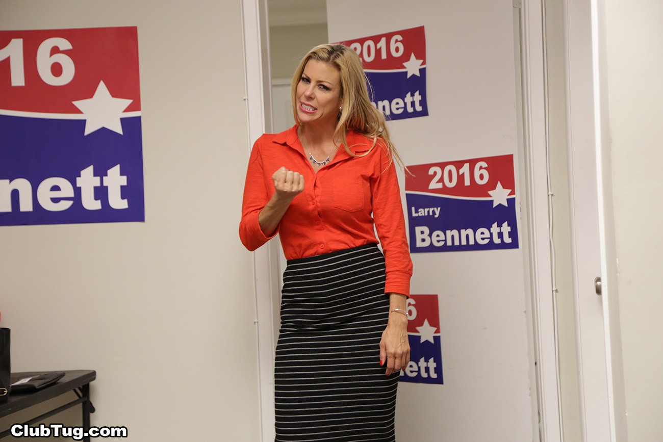 Hot off the campaign trail, young boy Joey gets caught playing with himself in the office. Milf Alexis Fawx takes notice and helps the young man concentrate by joining in and letting him fuck her big tits while she milks him dry with her dirty talking and sensual cock teasing.