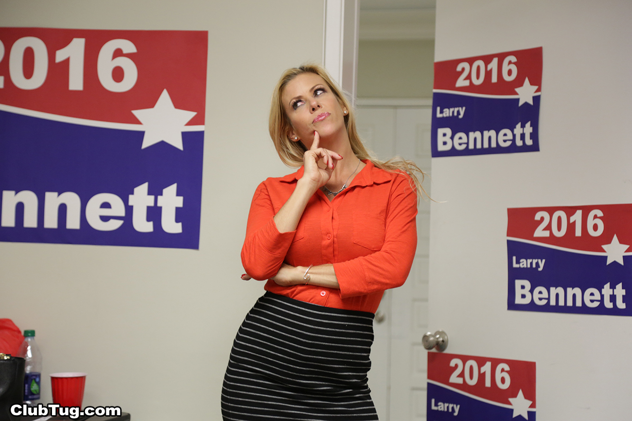 Hot off the campaign trail, young boy Joey gets caught playing with himself in the office. Milf Alexis Fawx takes notice and helps the young man concentrate by joining in and letting him fuck her big tits while she milks him dry with her dirty talking and sensual cock teasing.
