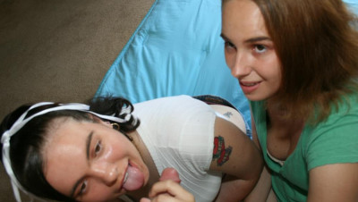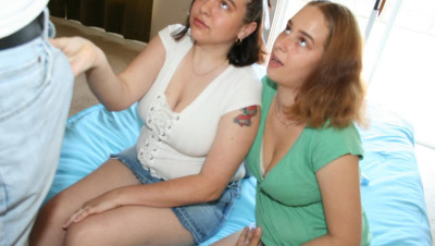 "Ok, we can help you jerk your cock Mr. Franklin, but we aint gonna swallow the sticky stuff thats gross, oh my gawd!" Says two curious teens Karla and Carmen as they spot the neighborhood perv jerking his cock!
