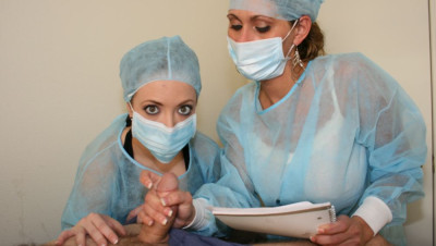 Dr. James and Dr. Ressin need to extract semen from Jonnys cock. They tell him to masturbate in the other room. But he cant cum so the two doctors tell him its ok to cum, and not to be embarrassed. The take turns jacking and tugging his cock until they are finally cum blasted.