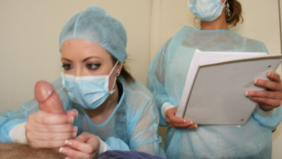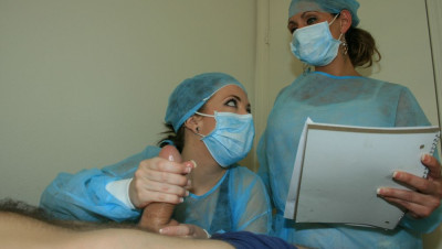 cumshot, handjob, brunette, pov, threesome, nurse
