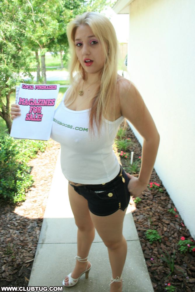 Big tit teen Shyla is selling magazines for her fundraiser when she stops over Mr. Frankins house. To Mr. Frankins suprise, the magazines she is selling is actually HER nude photos from a dirty magazine she shot for! Mr. Franklin kicks back while flipping through Shyla's mag while she jacks him off until he explodes.