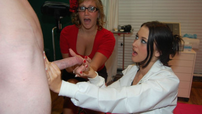 When nurse Alexis and her assistant take a look at a young patients cock, they become excited and decide to start coaxing him to jack off in front of them. The horny teens get excited as they reach out and help him beat his meat. The two are finally blasted with jizz in their faces and beg for more as ropes of cum fly out all over them.