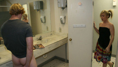 Teen Ericka catches William pulling his pud in a storage room. The shocked teen likes when she sees him jacking off his massive cock. Ericka reluctantly joins in and starts milking his cock when she is splattered with salty goo.