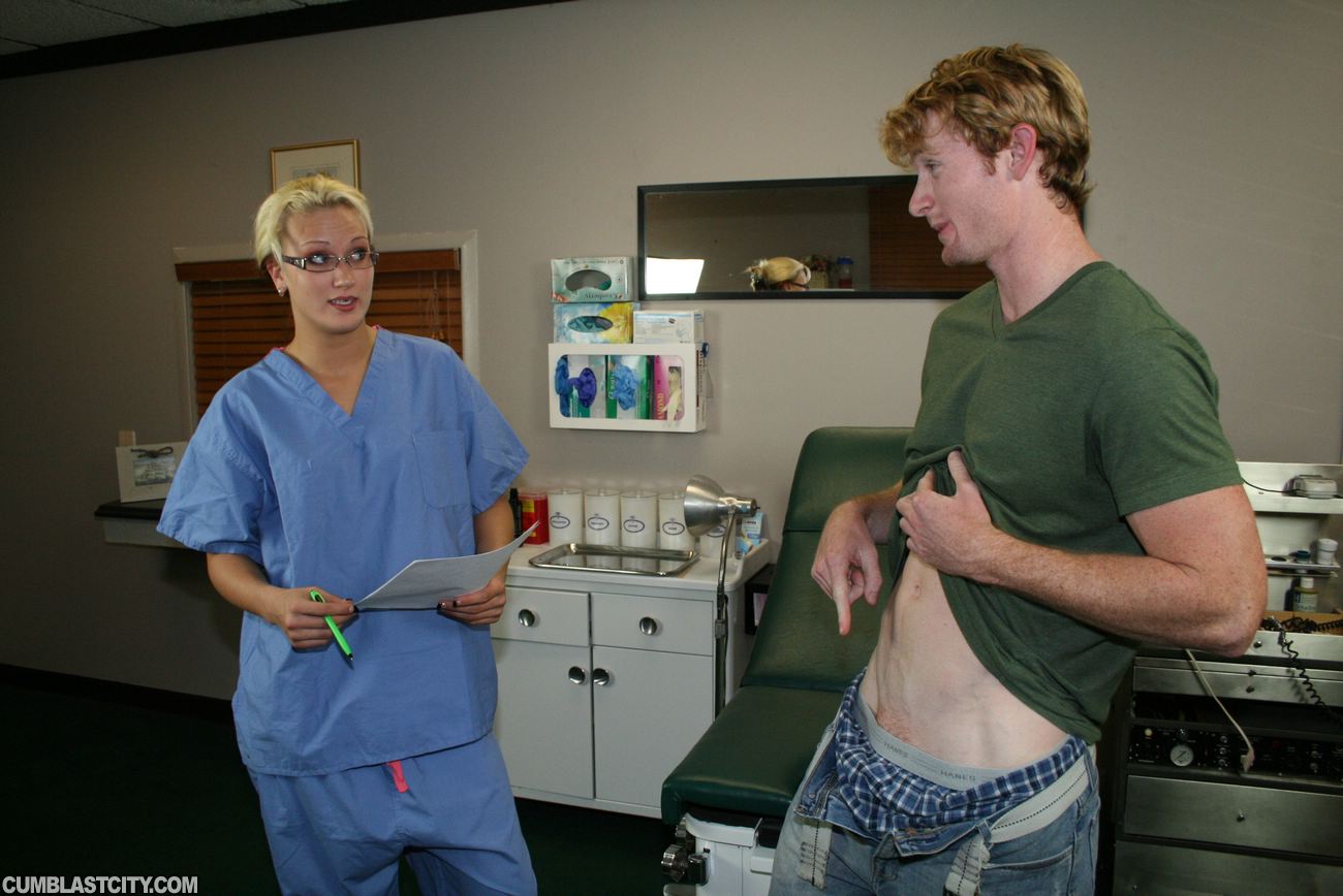 Young Jonny likes to spurt his goo all over pretty girls, he just cant contain his throbbing cock and his monster ball bag. When he visits nurse JC to discuss his "problem", the nurse gets really turned on. She doesn't believe he can cum that hard so Jonny shows her.