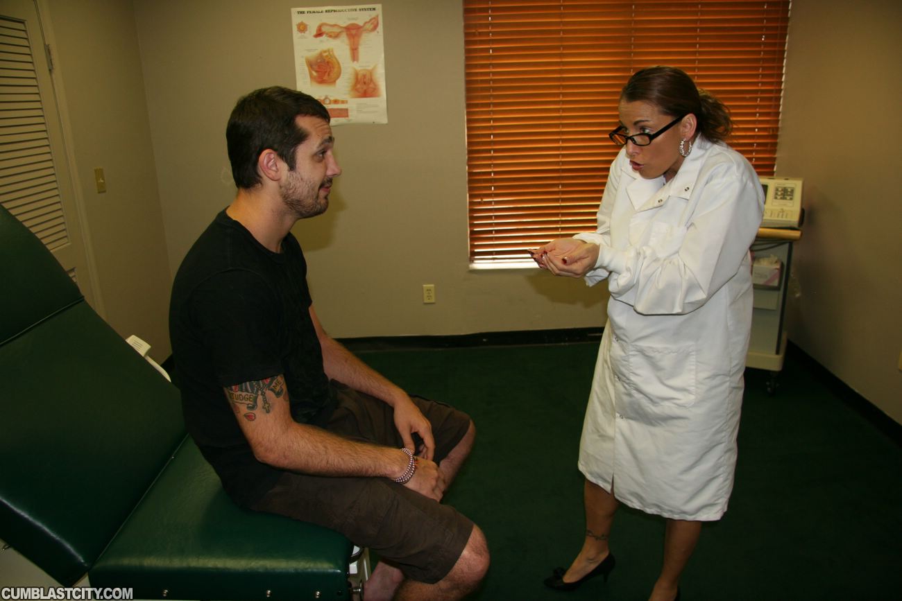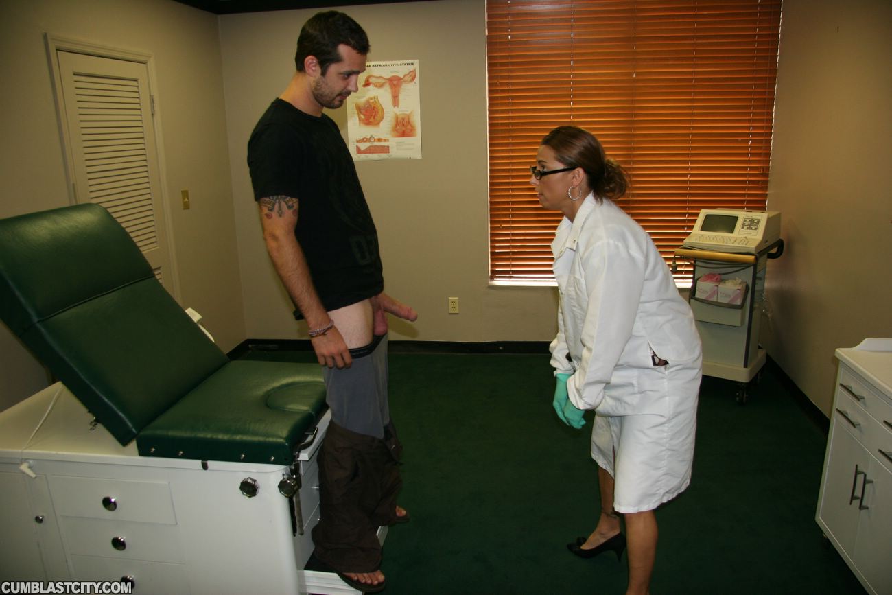 Billy is frightened by the amount of sperm he can spurt. After months if hesitation he finally visits the hospital. Enter Dr. Starr, a Urologist. Dr. Starr begins to examine Billy when he accidentally gets erect. Dr. Starr, curious at his problem, decides to stroke it. Billy immediately unloads a monster load on her face and huge boobs.