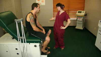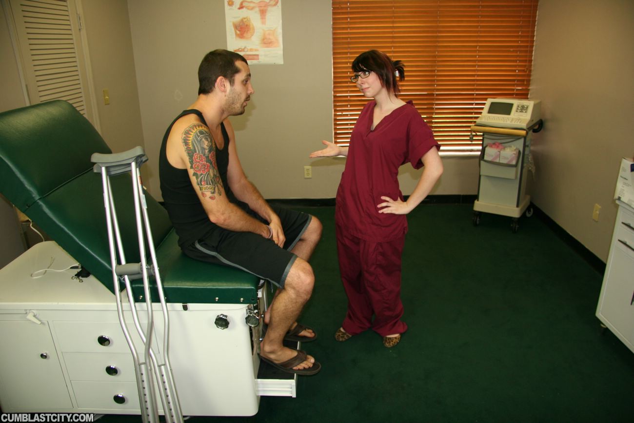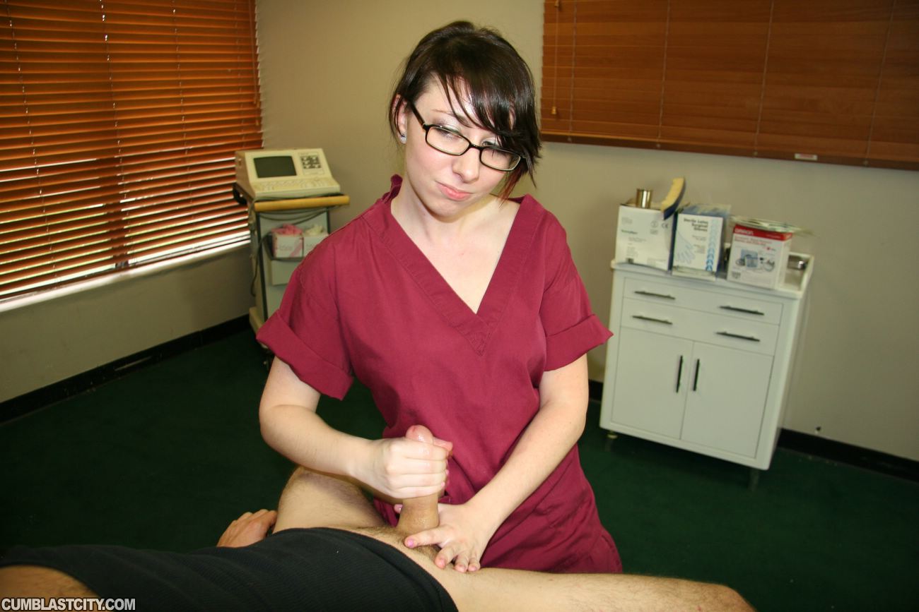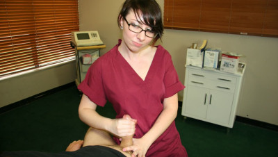When Billy goes to see the nurse about his bum leg, he also tells nurse Dakota about his ejaculation problem. He can cum a lot more than most guys. Dakota is in shock, and curious. She closes the door behind her and starts jerking his throbbing dick to see for herself.