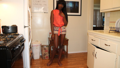 Billy visits sexy ebony Ana Foxx while she is washing the dishes at home. The hot babe is always happy to give him a handjob, so she stops washing and gets naked. Ana sits on her knees while jerking Billy's cock, asking for a facial cumshot. Billy does never say "no" to a sexy lady, so he explodes his cum in her face.