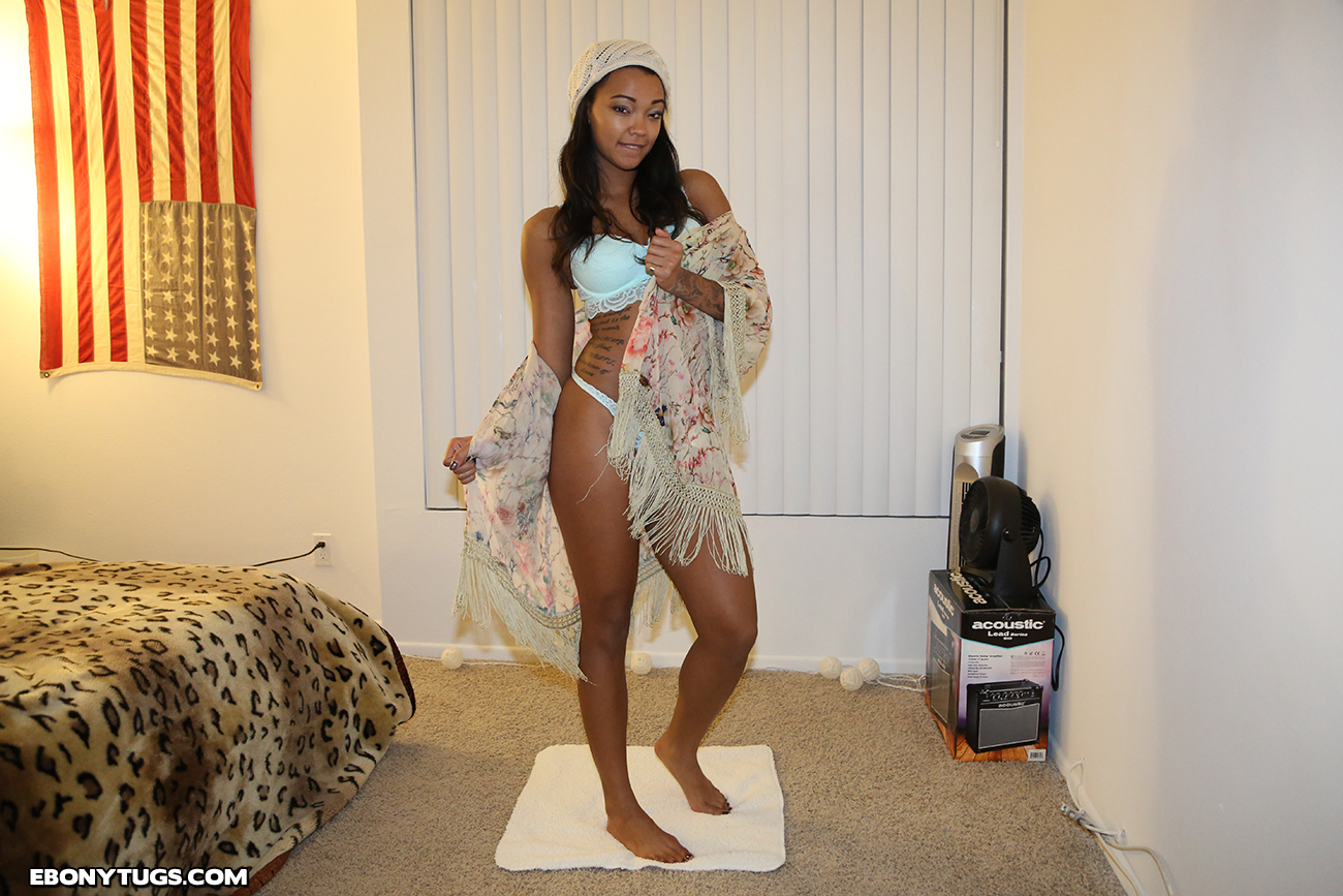 John is moving to his new house and gets really surprised when he realizes his girlfriend, Harley Dean, has unpacked the entire bedroom already. However, he gets angry when he notices she has placed the USA flag upside down. The young man can't forgive that, unless... he gets a handjob by her sweet hands. The teen ebony would do anything to fix that huge mistake of her, so she grabs her boyfriend's boner and strokes it slow and sensually, until he releases all his hot cumload in her sweet face.